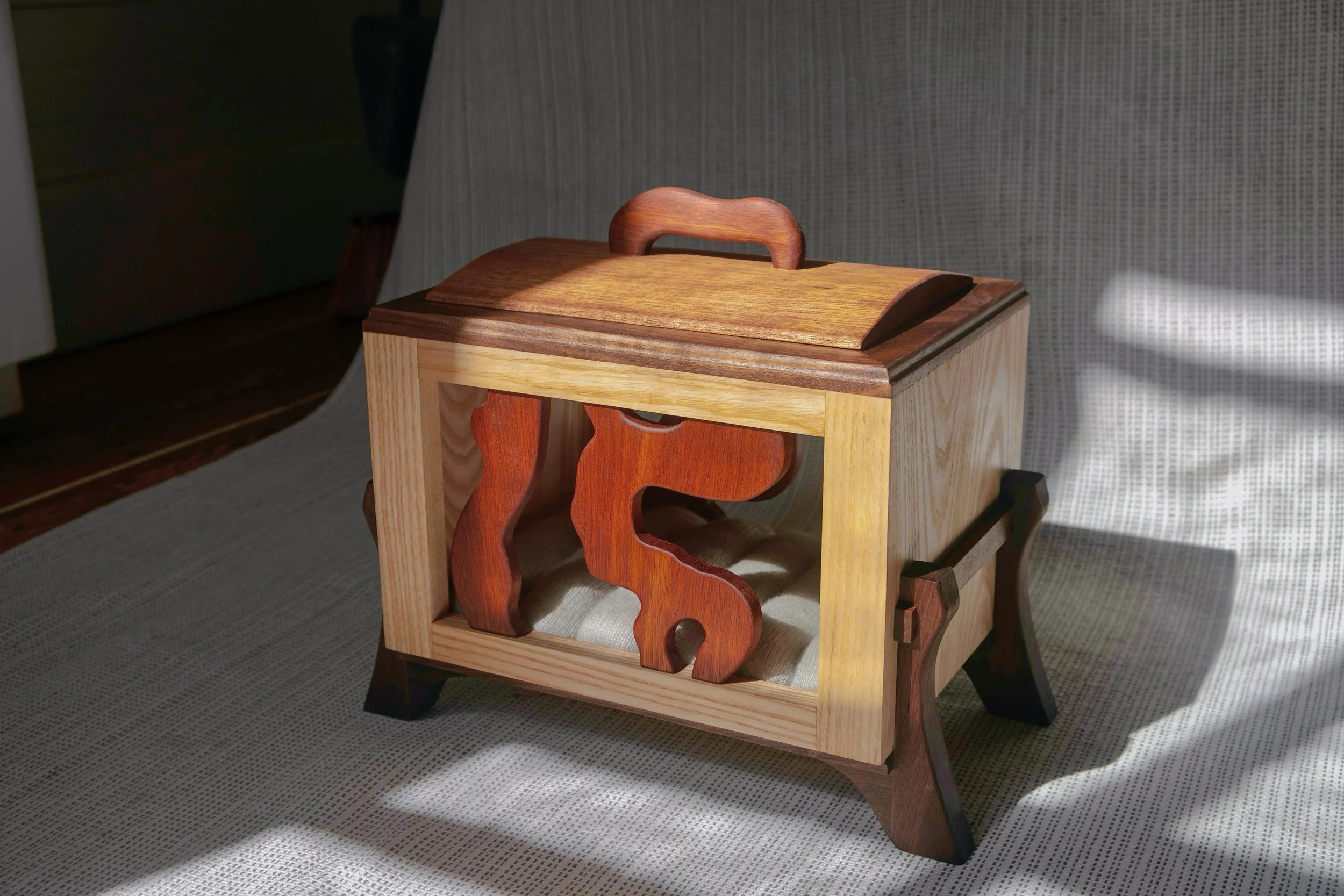 The final piece for the series and the most representative of the concept, the piece is meant to explore the interplay of presence and absence, using space as a design element throughout the piece. The design of the chest takes inspiration from features found in traditional Korean woodworking and architecture.