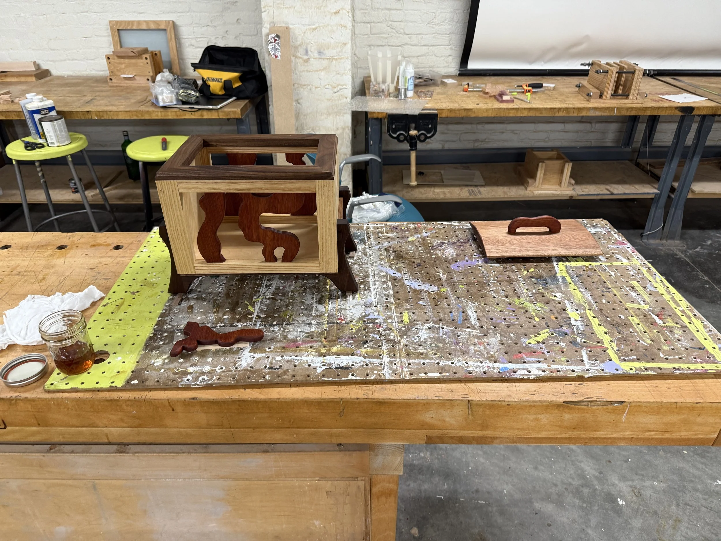 The jewelry box was inspired by the simple geometric patterns found in munsal, or lattice frames traditionally used in Korean doors and windows. While the patterns may not primarily be functional, they add a modest yet decorative element to the minimalistic design of the box. The interior and exterior of the box's sides were made from White Maple and Cherry wood, where the natural contrast of the two woods accentuates the pattern when the lid is placed.